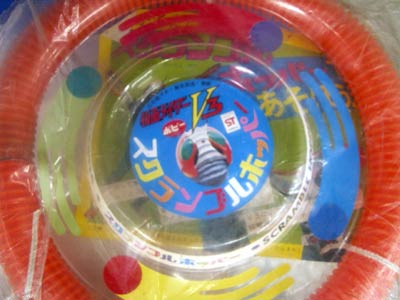 V3の新しい武器?が登場です。 「スクランブルホッパー」おぉなんとも強そうなネーミング。フリスビーです。 周りのパイプ状のものから音が出て敵をイカクしちゃいます。 秘密の構造の謎を考えつつぜひ現物を見にご来店お待ちしております。 他の武器も見つかるかもしれませんよ。 ポピー:V3が考えたふしぎな武器スクランブルホッパー台紙イタミあり。