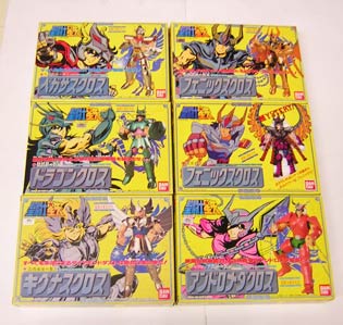 1987年のテレビ放映と同時に販売され、大人気商品となったバンダイのセイントクロスシリーズから、今更、言うまでもありませんが、ブロンズセイントのセットを紹介します。 放映当時、おもちゃ屋さんに並んだ黄色に統一されたボックスが、とても高級感を感じさせ、しかも手に持った時のクロスの重量感とひんやりした手触り、当時でいう精密感、星座形態への変化はとても新鮮さを感じ、違和感無く受け入れられました。 初期のブロンズクロスは頭がメット状態だったことだけが・・・・それはそれでイイんですけど。 状態は全品メッキ「Sランク」! 未開封ではないか?と思うくらい美しいです。 中野店 2階 スペシャル館にて、8月8日から販売します。
