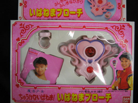 「いぱねまブローチ」は赤い宝石に指輪を触れさせると、宝石が光ってメロディーが流れます。