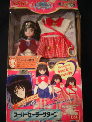 私服はマジックテープで簡単に着せることができ、お洋服に付いているヒモを引っ張ると素早く「スーパーセーラーサターン」に変身です。