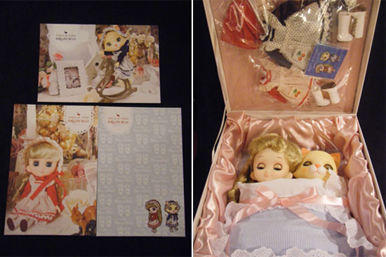 デフォルトのお洋服は箱のフタ内側に入っていて、お布団の中のでこニキは裸んぼではなく白いワンピースを着ています。