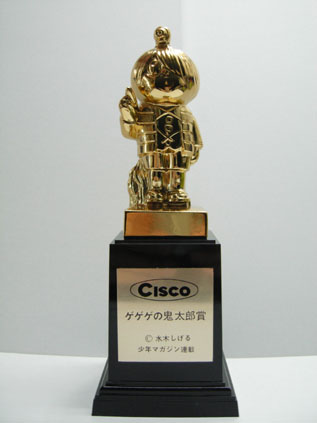 http://www.mandarake.co.jp/information/2008/05/23/21nkn05/index.html ←こちらなど、何度かシスコの応募景品(ホンモノのほう)は紹介済みですが、この「復刻版 鬼太郎トロフィーセット」は、以外にも今回がはじめてのご紹介。なぜかと申しますと・・・これまで、外箱+特典”鬼太郎ソフビ人形”が付いた完品が入荷しなかったから。これです。