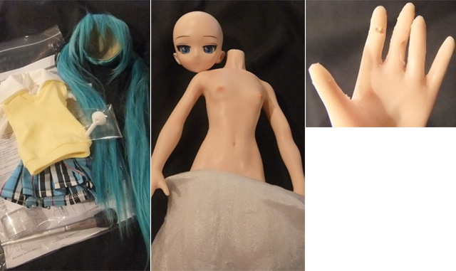 付属品はウィッグ、制服一式(靴と靴下は元々ありません)、お手入れセット、首のジョイントパーツです。