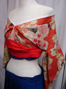 帯も着物も、巻きつけて着るタイプで、さらにスカートもヒップハング用にウエストに余裕があるので、女性M程度ですが、Lの方でも着ていただけると思います。