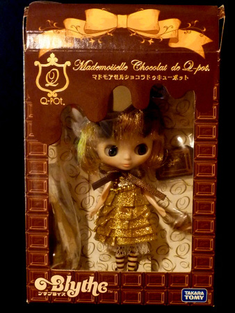 お菓子モチーフのデザインで人気のQ-pot.とのコラボプチブライス、マドモアゼルショコラドゥキューポットが入荷しました。