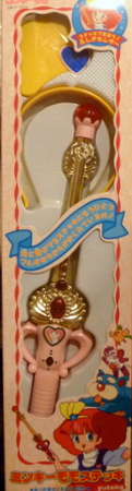 1作目のステッキに比べると赤い石とかメッキとか、キラキラ系の魔女っ子アイテム色が少し濃くなりましたが、モモのイラスト入りなところには時代を感じますね。