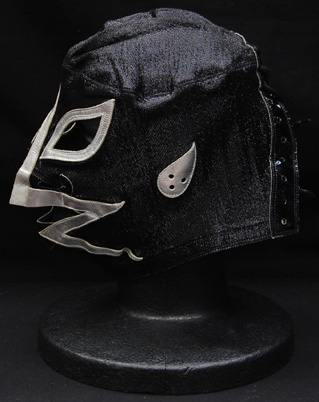 本日販売はミクロ館 プロレス覆面コーナーから、エル・パンテーラ パンテーラ製タグなし 黒特殊 金×白フチ スッポリタイプ 本人使用・サイン入り◎
