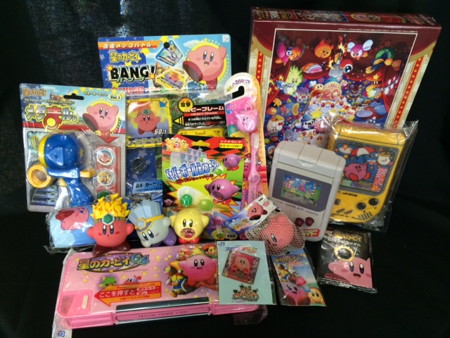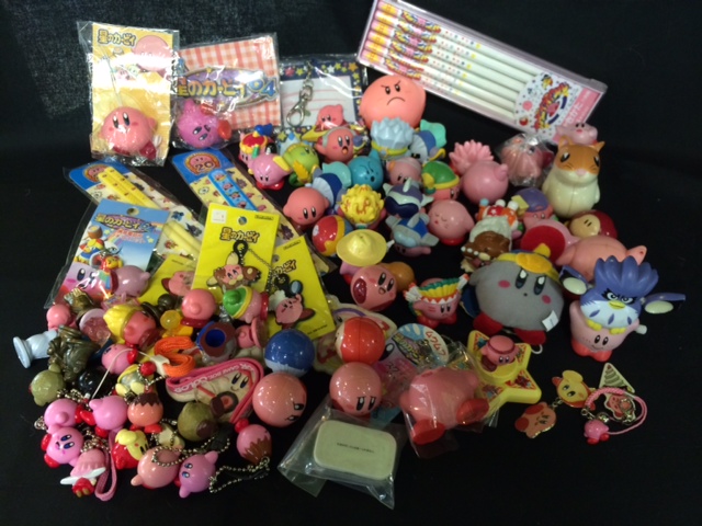 ぬいぐるみ・ミニフィギュアを中心に、コンディショニングシャンプー・ゲームボーイ型スポンジ・スーパーボールシューター・バング・ジグソーパズルなど、ピンクでファンシーなアイテムに癒されメロメロだよ〜。。☆★カービィに埋もれた生活しよう♪♪♪♪