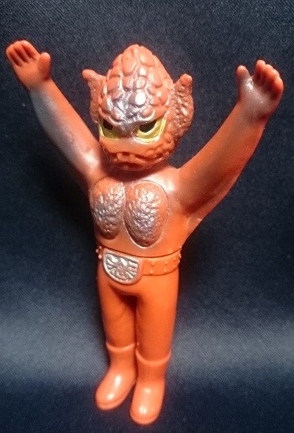 薄い水色成型で顔に赤いスプレーが入っているのは「チビッコ怪獣シリーズ」タグのパチものなので注意(アレはアレで現在ではまた違った意味で凄く価値があるのですが)。
