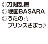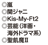 関●ャニ・山~風~・Se●y Z●ne・Ki●-My-F●2などの10番目のアルファベットを頭文字にするあの事務所所属の王子様たちの本をいろいろ、聖●魔 II などが出てますよ~